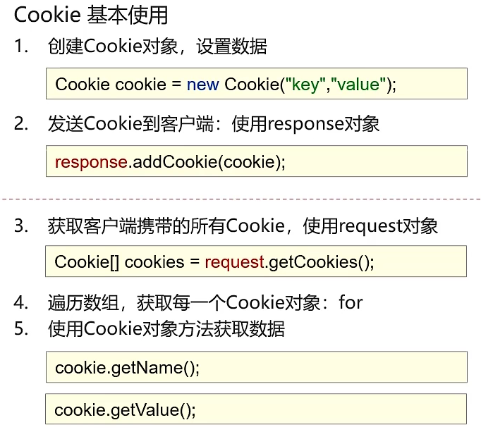 Cookie: 客户端会话技术,将数据保存到客户端,以后每次请求都携带Cookie数据进行访问。
