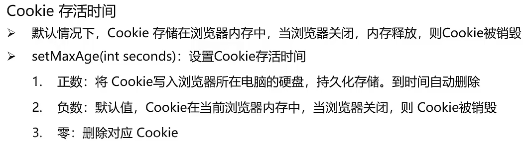 | @WebServlet("/aServlet") public class AServlet extends HttpServlet { @Override protected void doGet(HttpServletRequest req, HttpServletResponse resp) throws ServletException, IOException { String value = "张三"; value = URLEncoder.encode(value, "UTF-8"); Cookie cookie = new Cookie("username", value); cookie.setMaxAge(60*60*24*1); resp.addCookie(cookie); } @Override protected void doPost(HttpServletRequest req, HttpServletResponse resp) throws ServletException, IOException { super.doPost(req, resp); } }