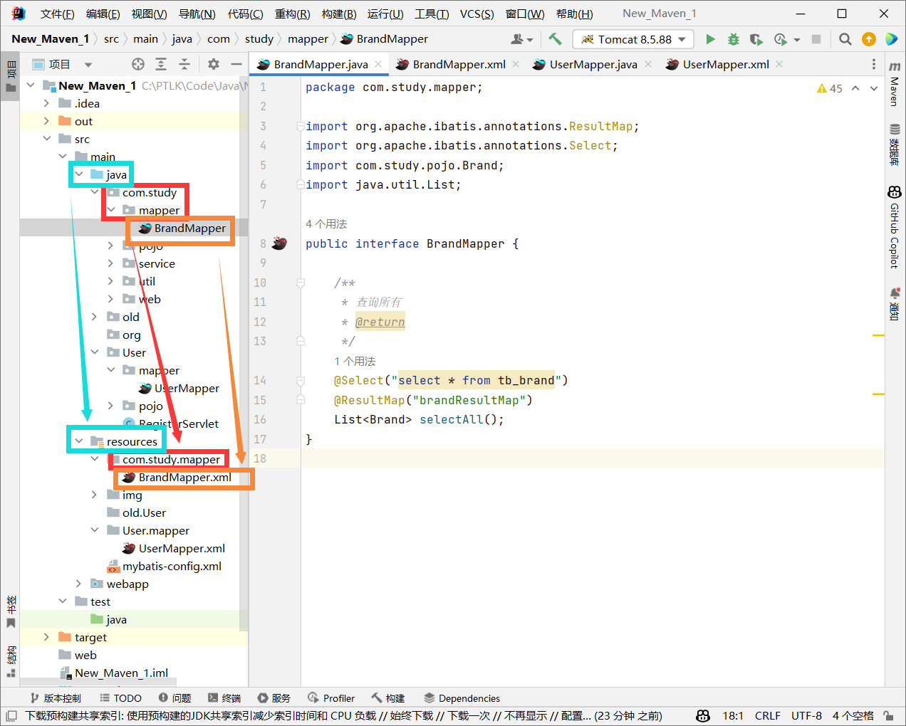 @Select("select * from tb_brand") @ResultMap("brandResultMap") List<Brand> selectAll(); }