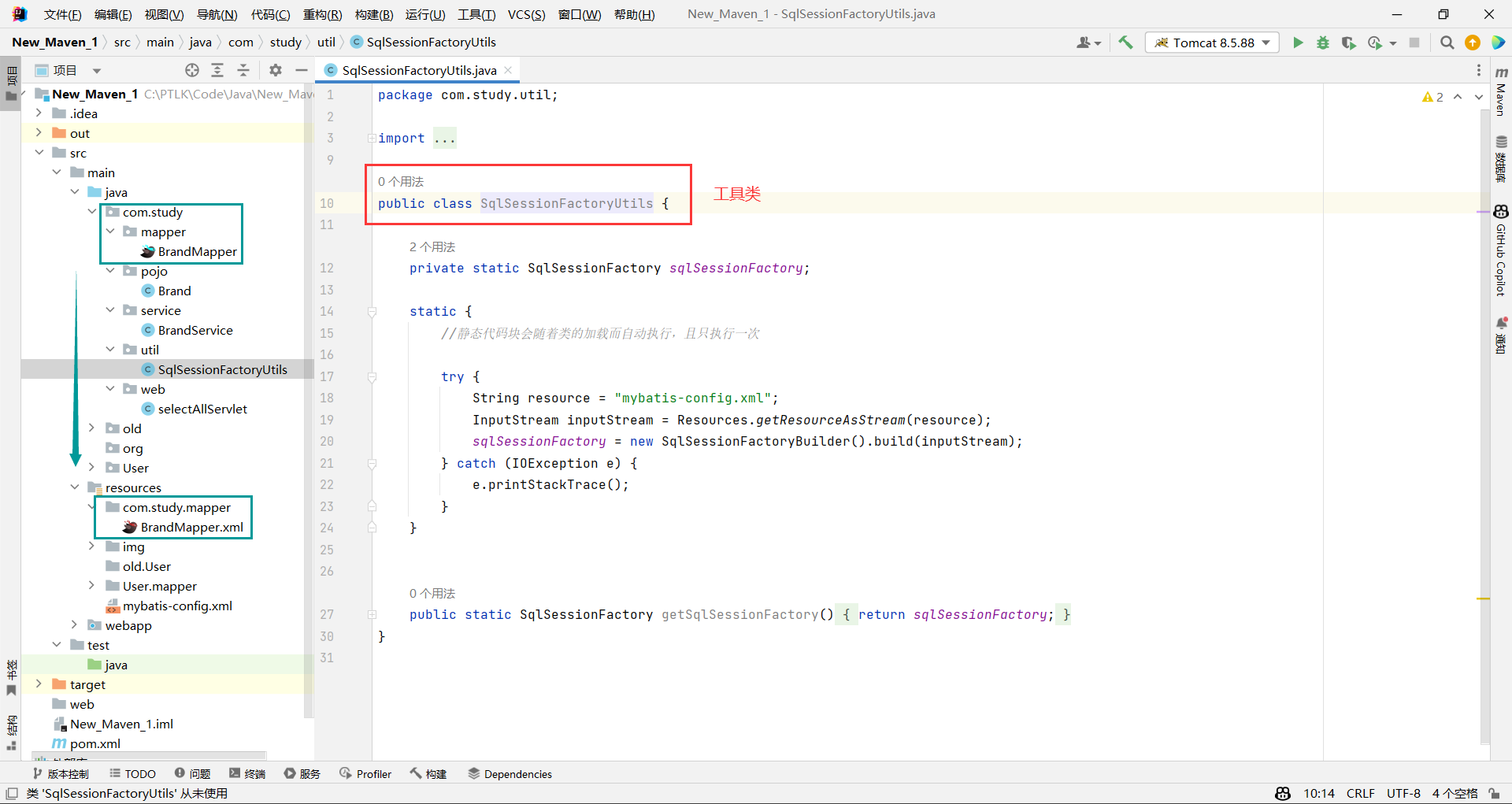 SqlSessionFactory sqlSessionFactory = SqlSessionFactoryUtils.getSqlSessionFactory();