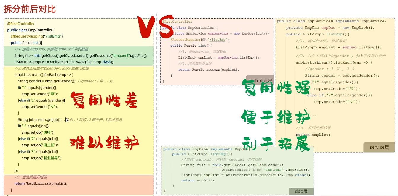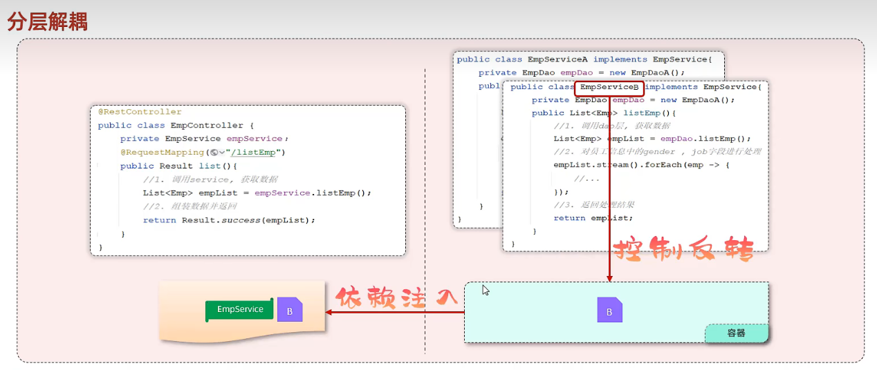 | @RestController public class EmpController { private EmpService empService = new EmpServiceA();