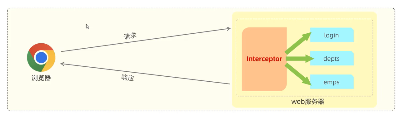 拦截范围不同:过滤器Filter会拦截所有的资源,而Interceptor只 会拦截Spring环境中的资源。